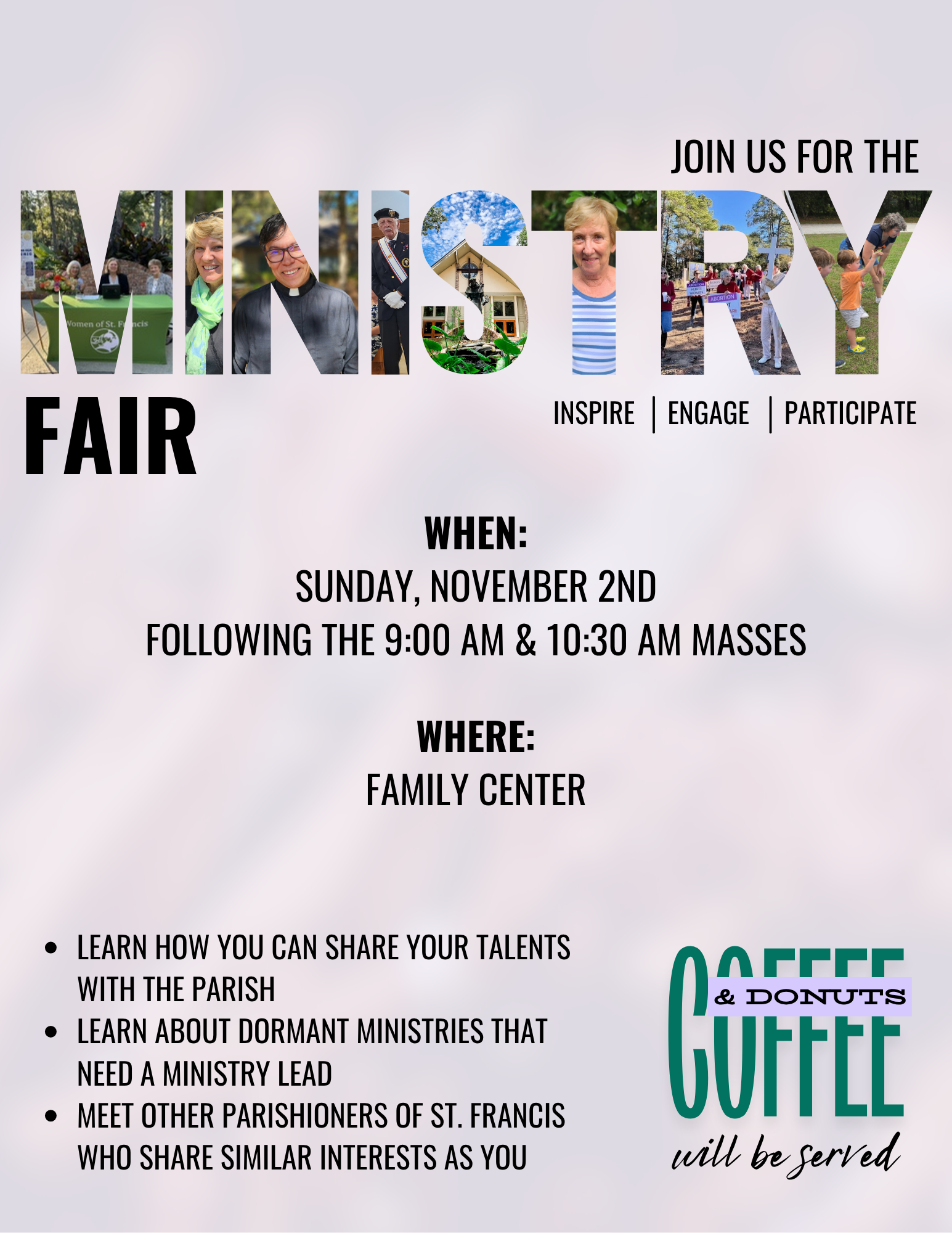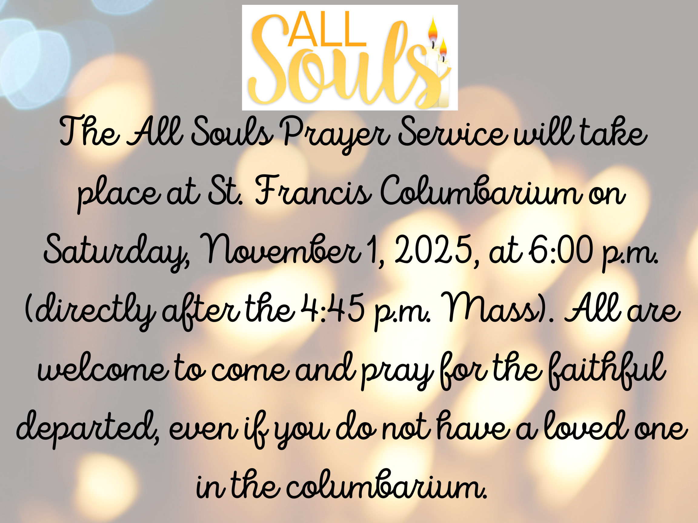 Beginning on Monday, November 3rd - Thursday, November 6th, the priests will be on Retreat. We will be having Communion Services only during this time.