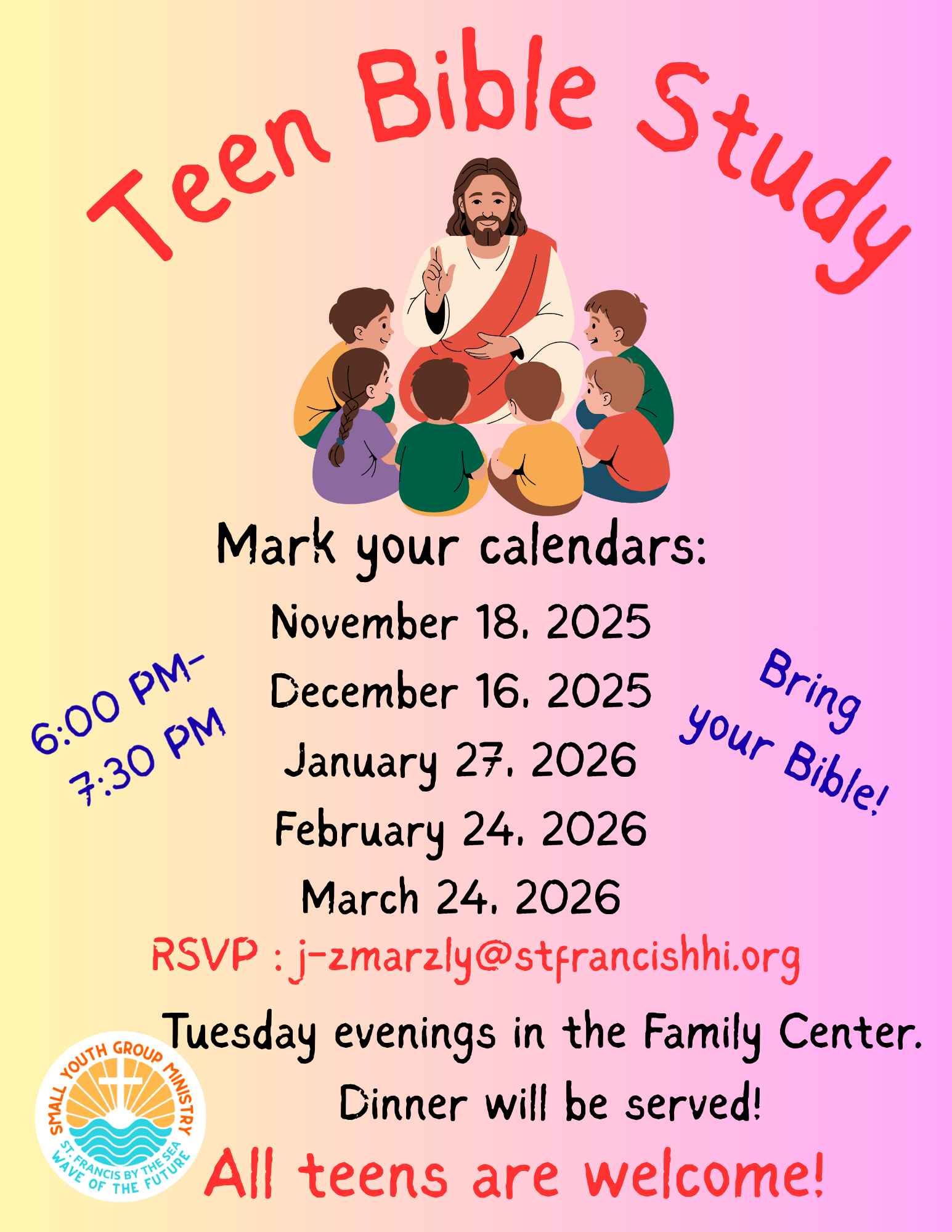 Tuesday: 8:30 a.m., 11:30 a.m. & 7:00 p.m. Spanish
