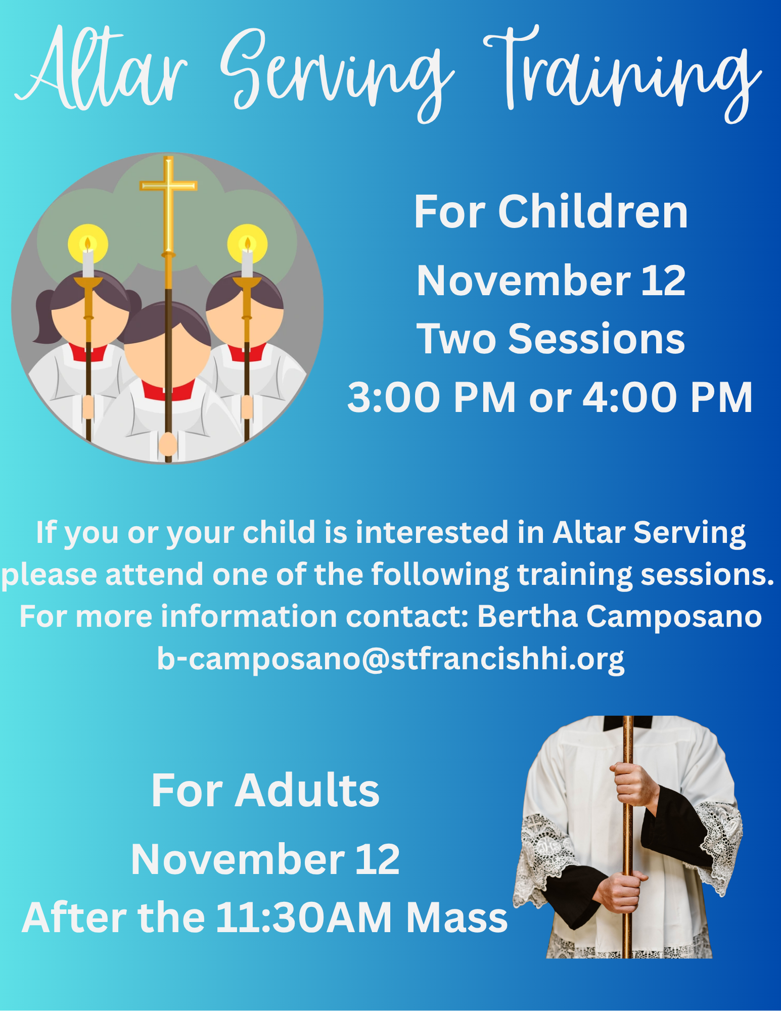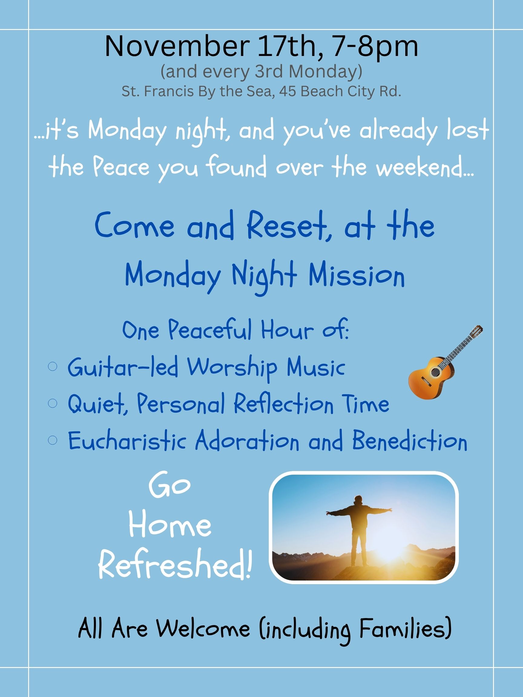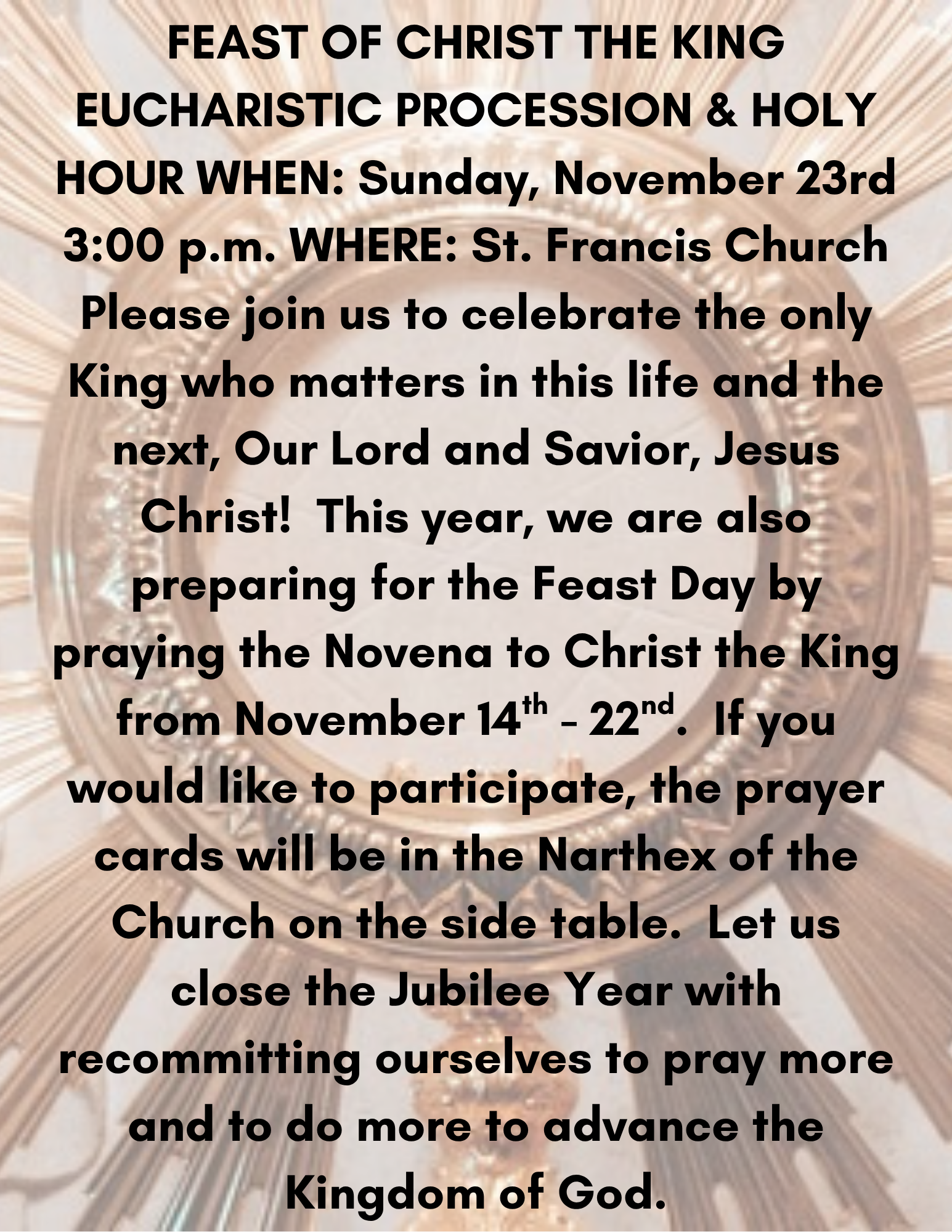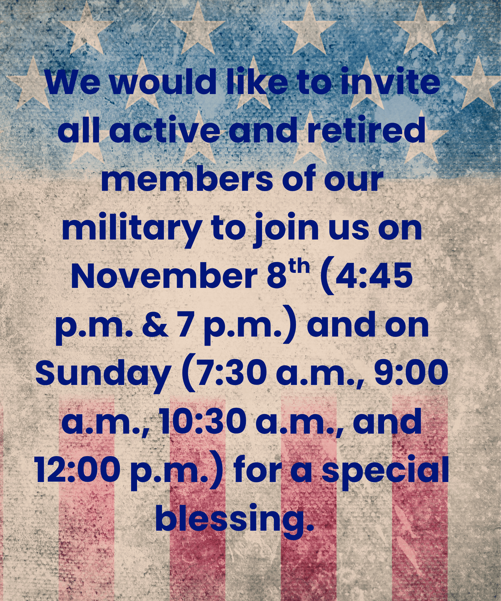 Beginning on Monday, November 3rd - Thursday, November 6th, the priests will be on Retreat. We will be having Communion Services only during this time.