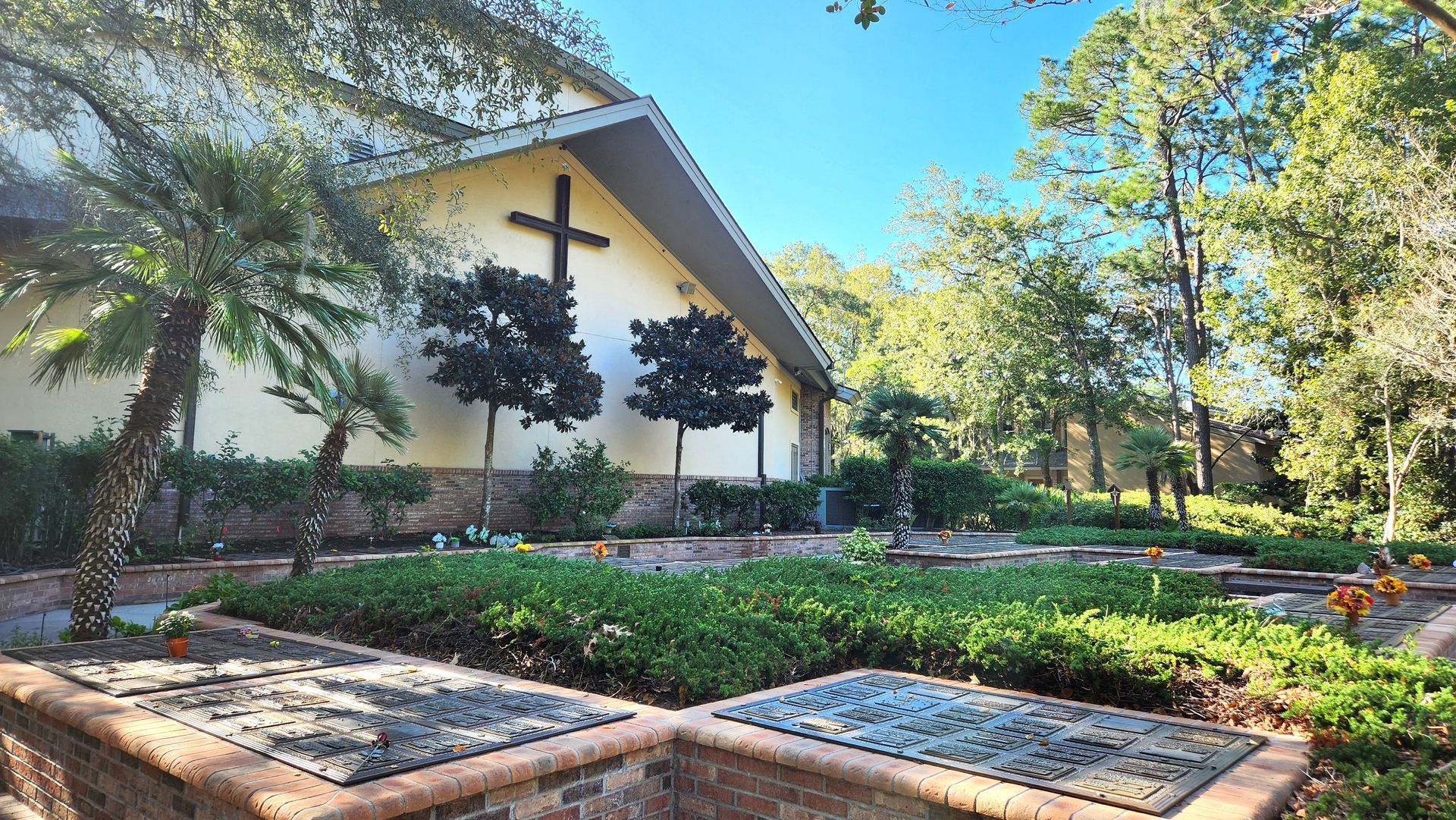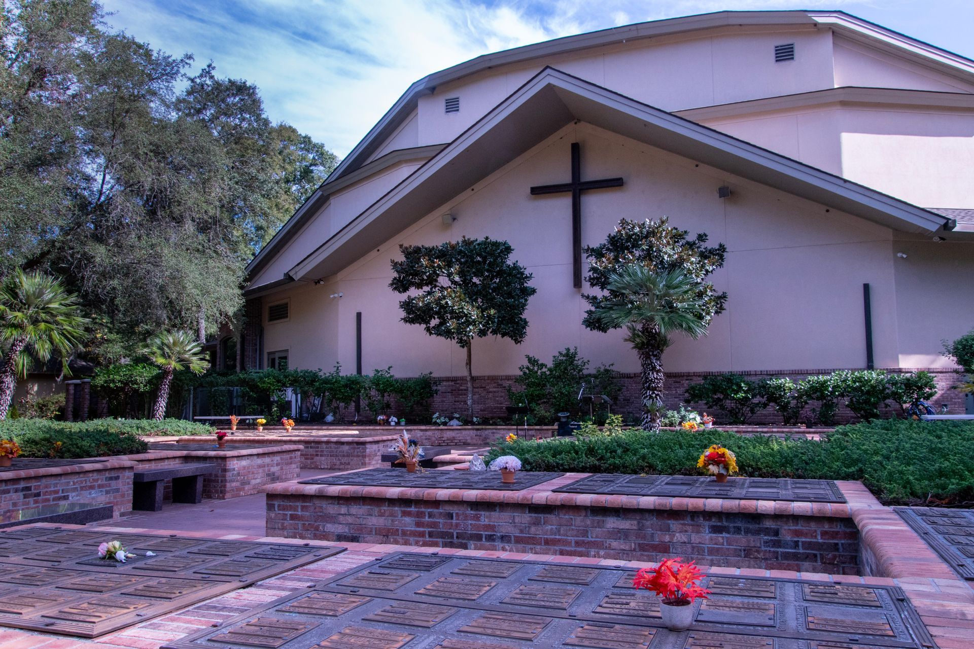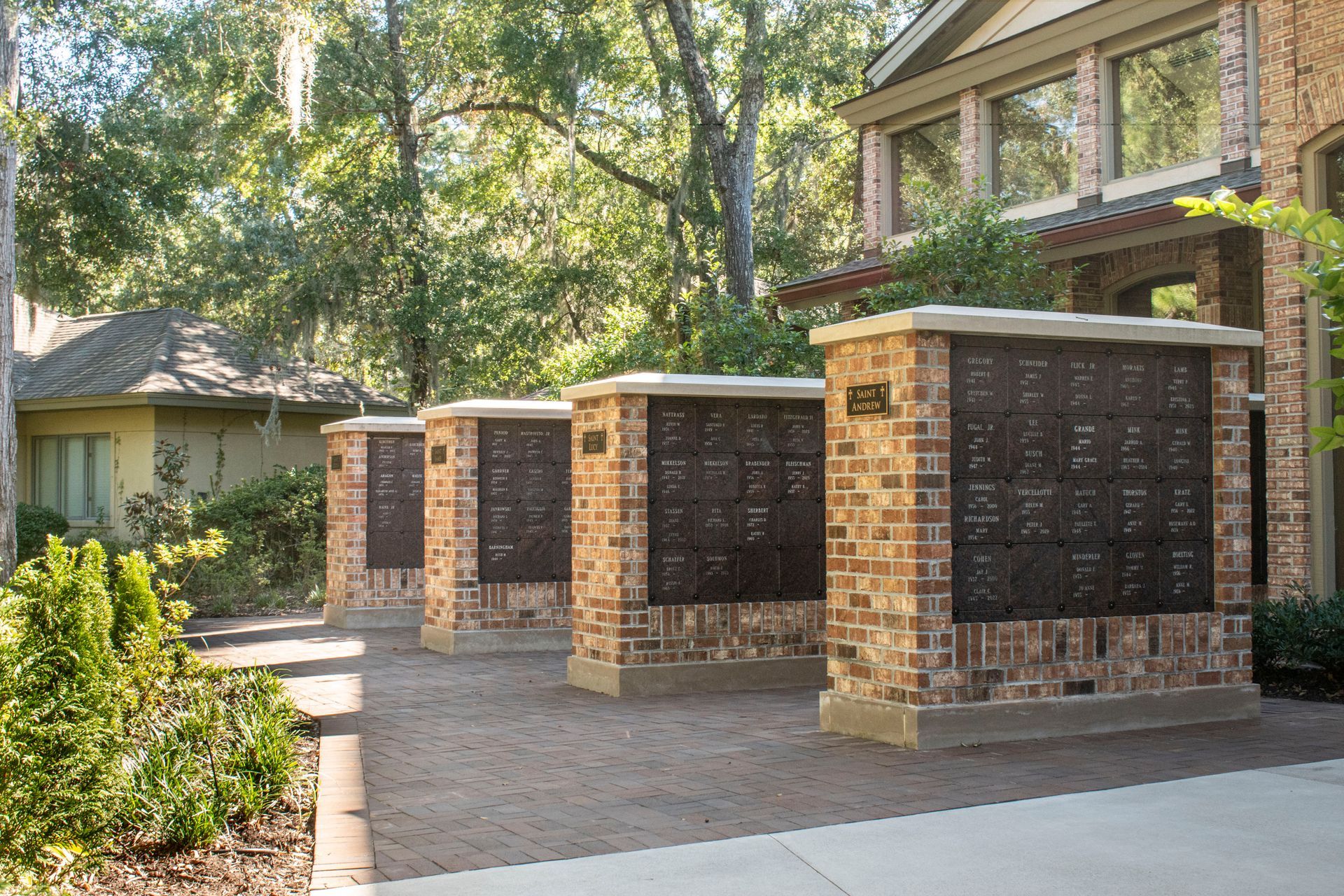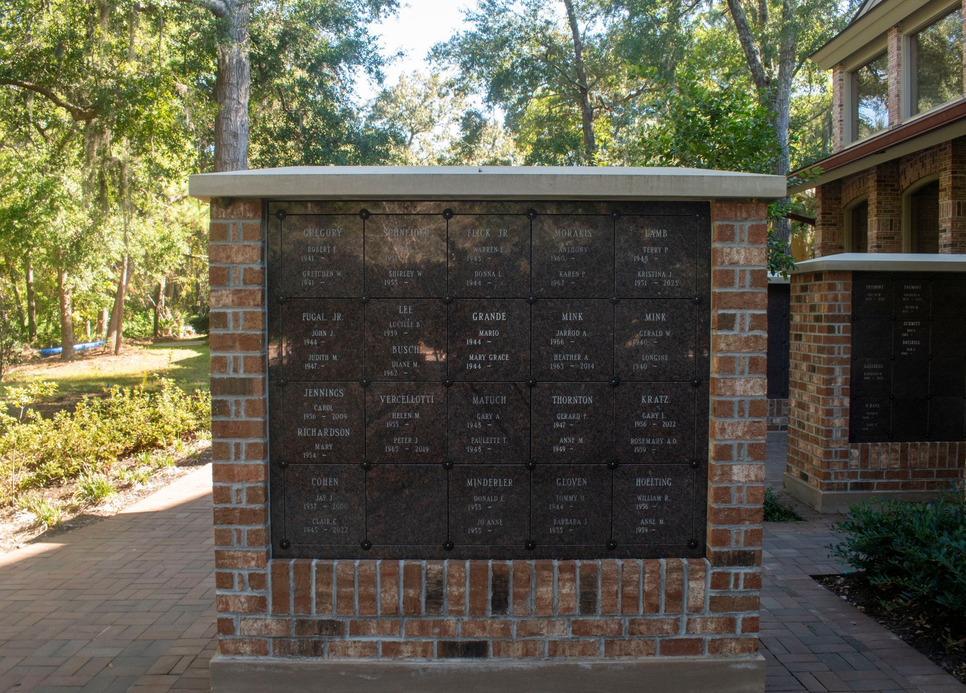 The Columbarium provides a reverential place for inurnment of our beloved deceased. It reposes the ashes of those who have crossed over to eternal life in a setting close to familiar surroundings in which they worshiped. To the living it provides a garden spot for visitation, remembrance and prayer, as well as a setting for liturgical and sacramental services.