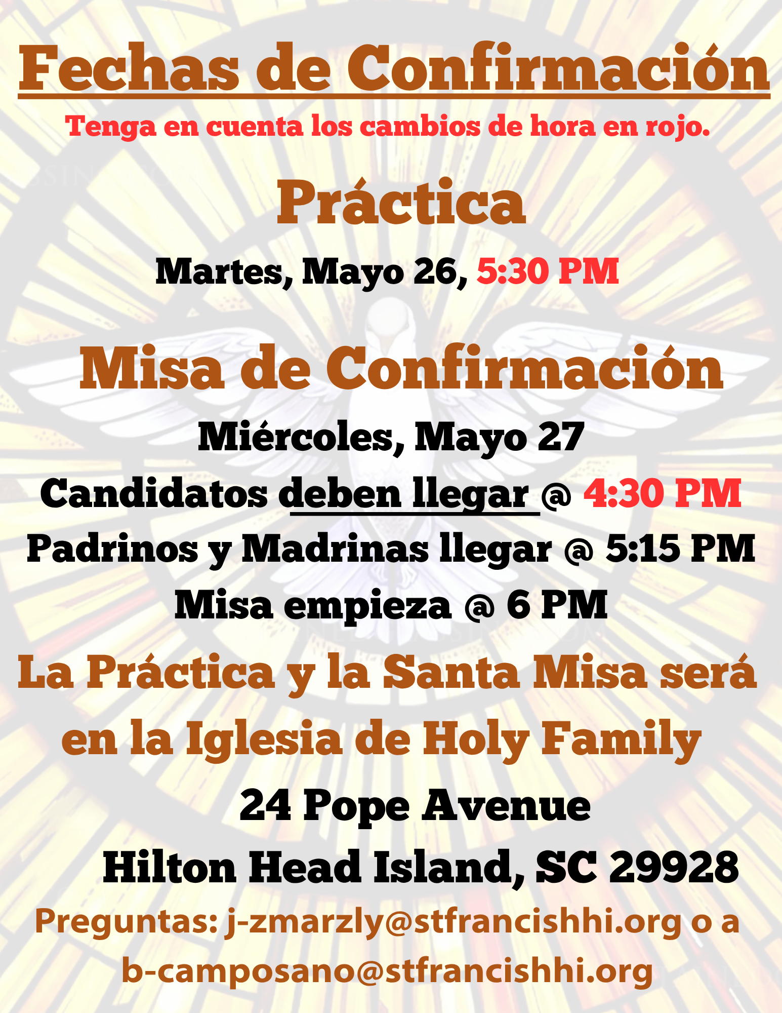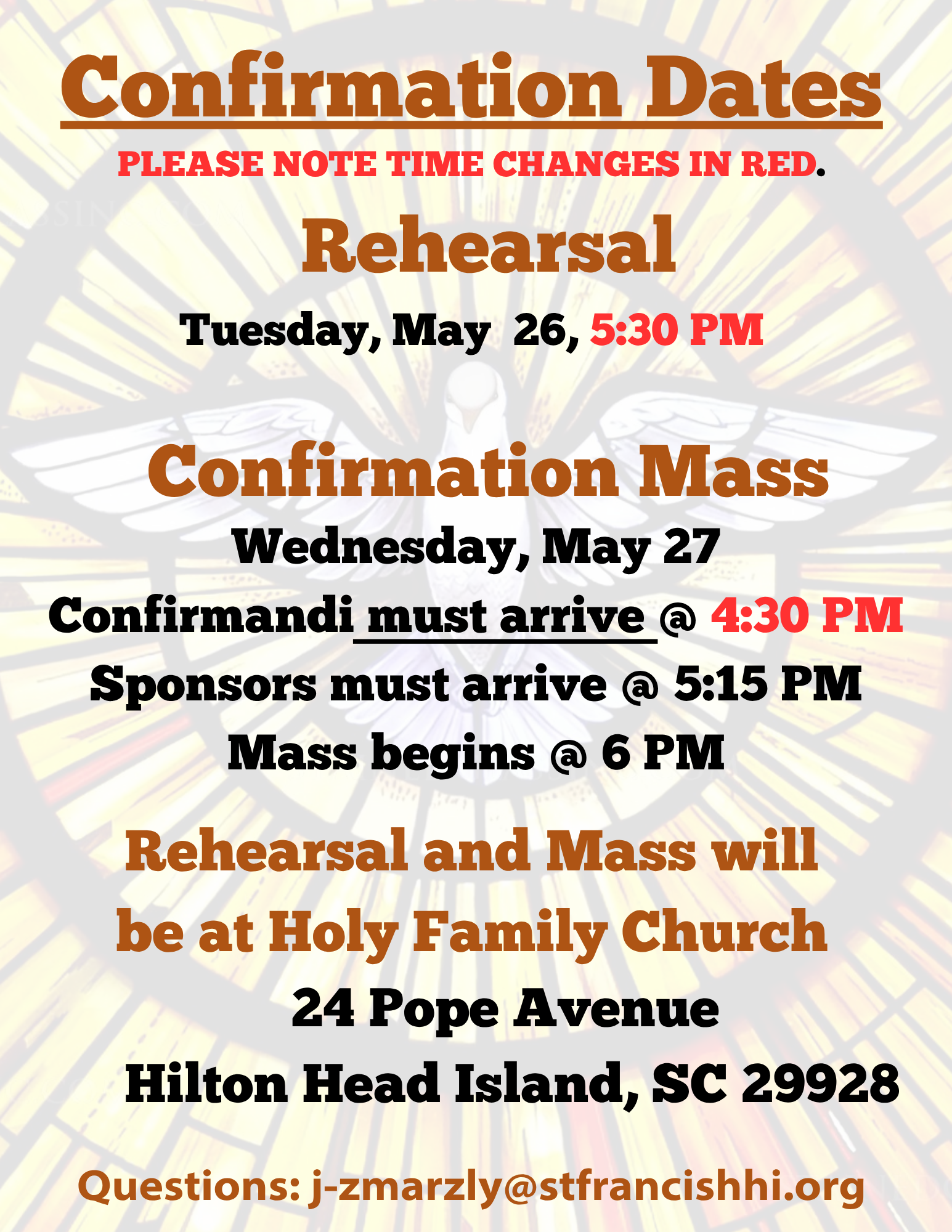Confirmation Date for 2026: Wednesday, May 27th - 6 p.m. -Holy Family Catholic Church